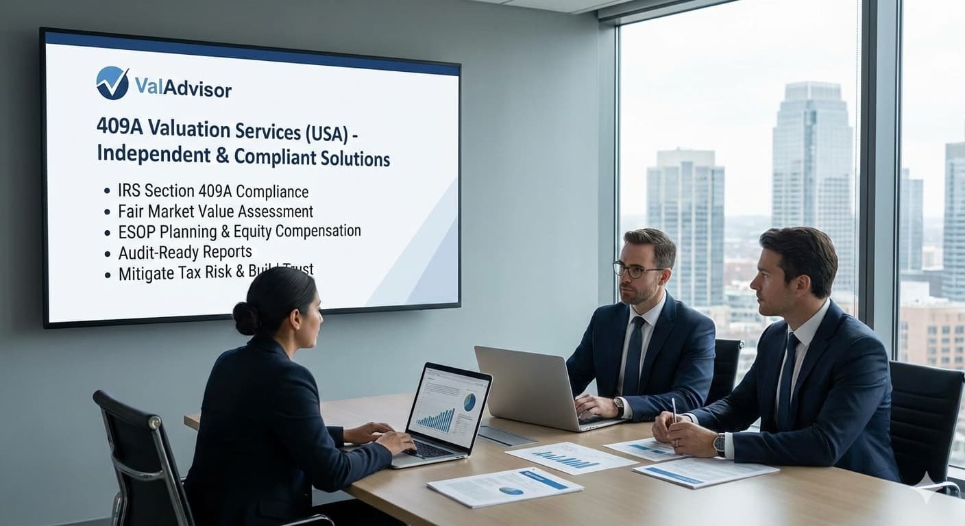 ValAdvisor provides comprehensive and independent 409A Valuation and 409A Valuation USA Service solutions designed specifically for startups, scale-ups, and growing companies with US operations, US investors, or cross-border structures. Our valuations are carefully developed to determine the fair market value (FMV) of common stock in strict accordance with IRS Section 409A regulations, helping companies avoid potential tax penalties and compliance risks.Our experienced valuation professionals follow globally accepted valuation standards and proven methodologies, including income, market, and option-pricing approaches, to deliver accurate and defensible results. Each 409A valuation engagement is tailored to the company’s business model, growth stage, industry dynamics, and capital structure, ensuring the valuation reflects real economic value rather than generic assumptions.ValAdvisor’s 409A Valuation USA Service supports a wide range of strategic and compliance needs, including ESOP planning, equity compensation issuance, fundraising rounds, mergers and acquisitions, financial reporting, and audit readiness. Our detailed valuation reports are designed to withstand scrutiny from auditors, investors, tax authorities, and boards, providing clarity and confidence in equity-related decision-making.By combining deep technical expertise, robust financial modeling, and industry-specific insights, ValAdvisor helps companies establish compliant equity pricing, manage stock option grants effectively, and maintain transparency with stakeholders. Trusted by clients in India, the USA, and other global markets, ValAdvisor acts as a long-term valuation partner—helping businesses mitigate tax risks, meet regulatory requirements, and build lasting investor trust through reliable and professional 409A Valuation Advisory Services.Visit us – https://valadvisor.com/409a-valuations-essential-compliance-startups-india-with-us-entities/