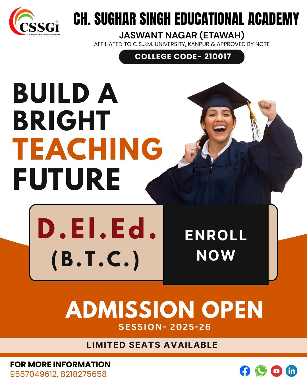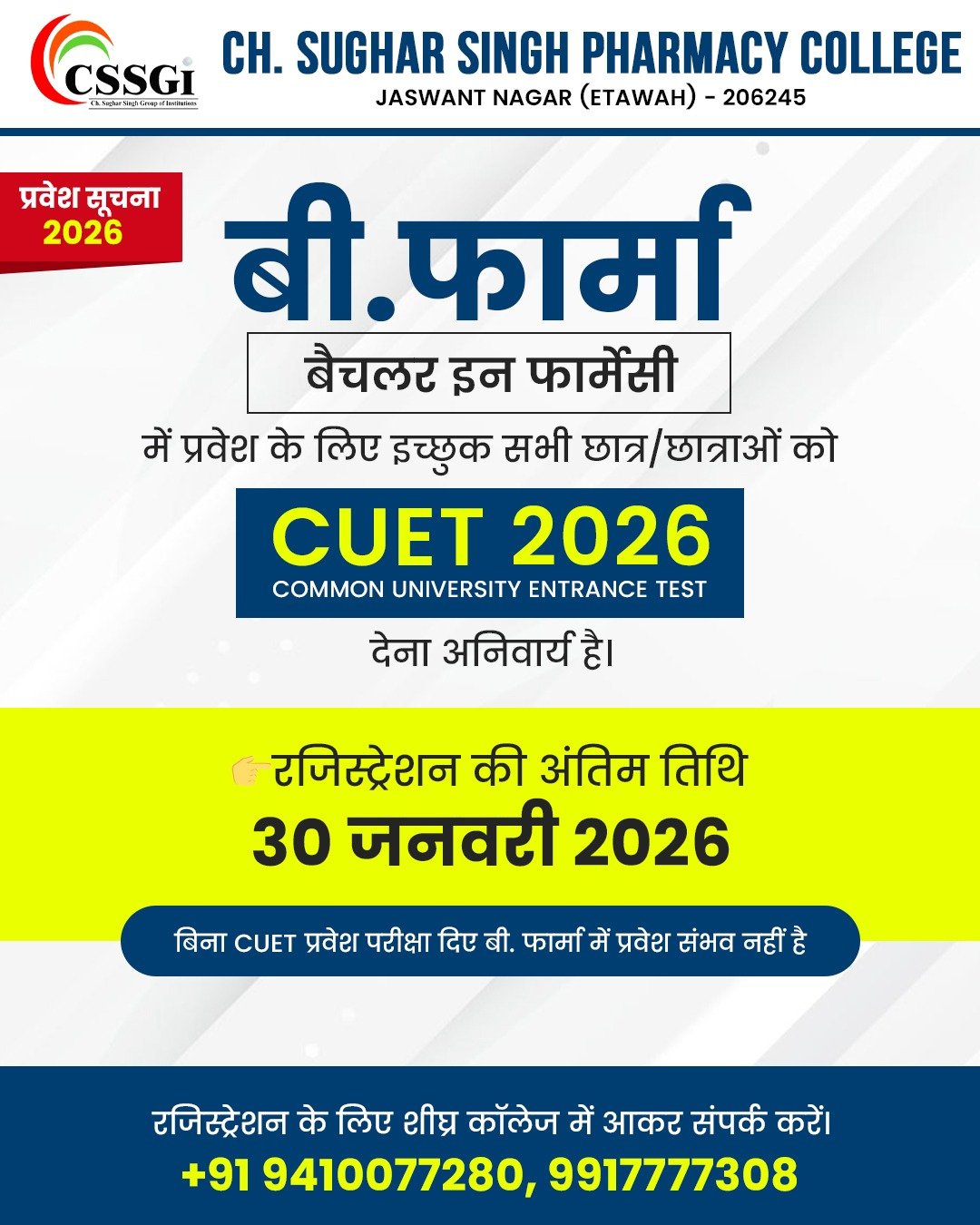 Chaudhary Sughar Singh Group of Institutions is a well-known educational destination in Etawah, committed to shaping students’ futures through quality education. As a trusted degree college in Etawah and a respected pharmacy college in Etawah, the institute is also recognized among the best PG medical colleges in Etawah. With experienced faculty, modern infrastructure, and a student-centric learning environment, the institution focuses on academic excellence, practical knowledge, and strong career growth opportunities.